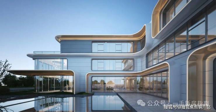 建筑营造上,采用绿城新一代“无边框曲面屏”,以玻璃盒子般的轻盈感、通透感隐现天地间,如倒影湖上的无界之镜。以远山近湖为设计灵感,采用大面积玻璃窗,带来空间的无界视野;同时,建筑立面配以金属质感的线条凸显建筑物轮廓,形成湖岸之上具有昭示性的无界天幕建筑群落。