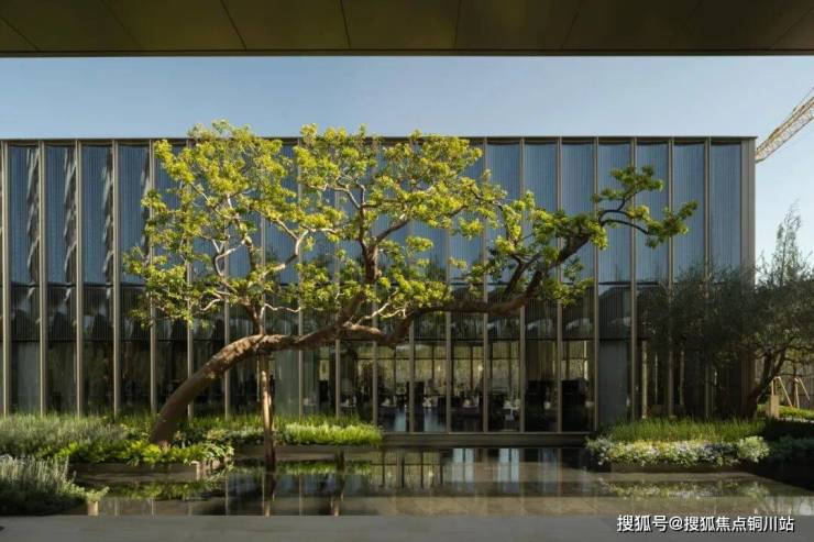 以酒店美学铸就隐奢门庭归家礼序;酒店式落客庭院呈现高雅的秩序之美,给人以高端、舒适、仪式的抵达体验;在环岛落客区,特色主景树作为视觉center,成为晋墅迎宾的标志性景观;