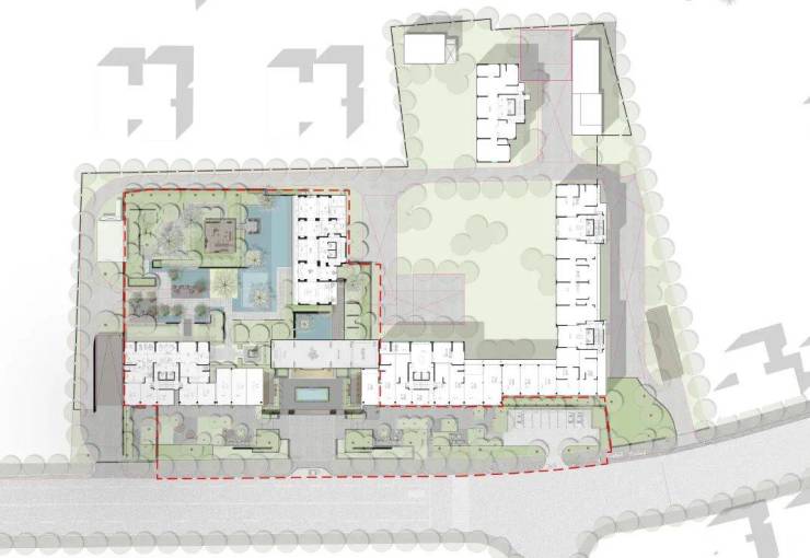 步入园区之后扑面而来的是度假感,水院围合出的一方天地让繁华与宁静在此转身,浓荫下是盈润流水,拂拭城市的喧嚣,让回家的心情在这里转换。“ 院落式景观、水院、树池、与矮景墙穿插,艺术水院 ”等场景打破建筑与室外的边界,室内外有机渗透,塑造层层递进的舒缓场景。