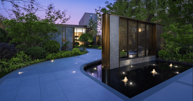 海信·悦澜山全维实景示范区,融合自然现代美学,营造东方奢雅的艺术体验,打造“锦绣六境 艺术五园”景观园林,石、林、水、花、周、景墙等点缀其中,一步一景一画卷,展现繁华深处一处静谧留白时光。