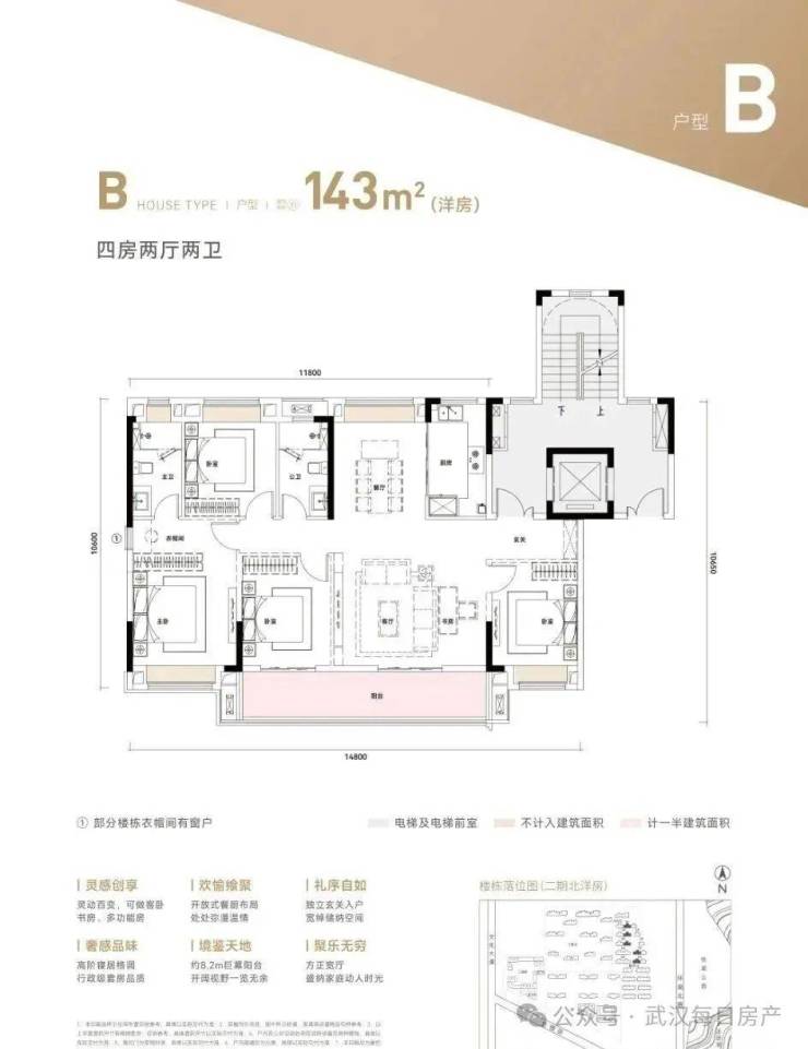 1单元143㎡ 1T2户 ,2单元130㎡ 1T2户