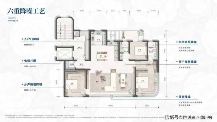 青特·璟誉设置混凝土分户墙和电梯井道,分户楼板增加隔音垫,包括Low-E窗、同层排水、铸铝门等。