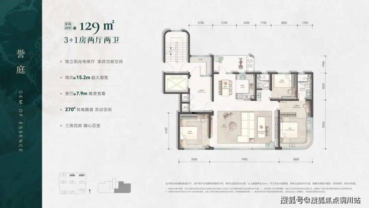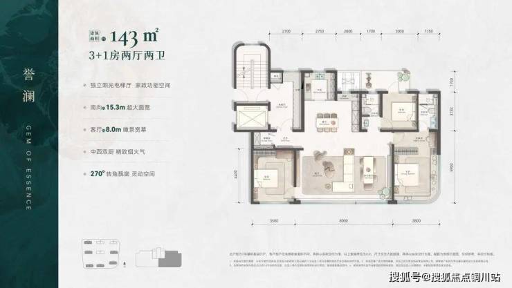 比如,我们看到建面129平和143户型,均设置成「3+1房」,而且留出来一间面宽约3.5米的次卧室,