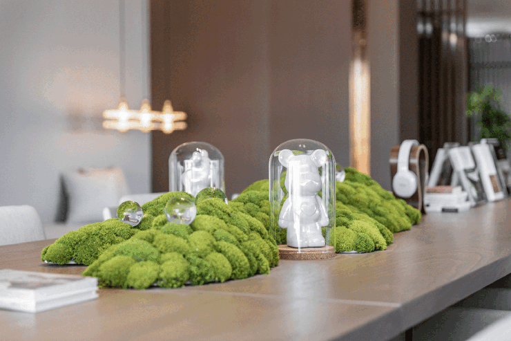 针对项目所在的青岛老城地块,如何有效吸引人流,带动唤新活力,成为设计思考。对话自然,入口简约且极具现代感的设计,设计提炼出自然生态中的元素,将其演变为软装陈设,融入空间。