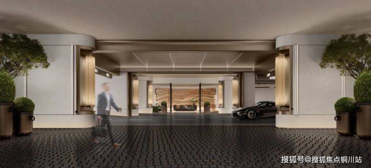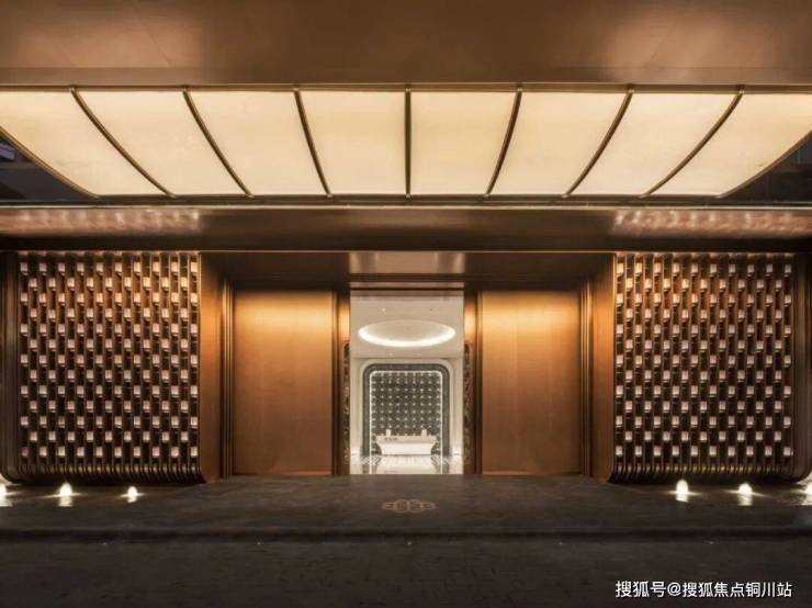 整个大门就是一个精心打造的艺术装置,也是目前武汉独一无二的尊崇归家设计。大门采用仿铜不锈钢材质,纹路同样提取自项目 LOGO,握柄镶嵌宝格丽绿大理石,奢华雅致之感不言而喻。入口景墙采用独特圆弧工艺,柔化硬朗边界,搭配项目专属定制 LOGO,将外滩玺的大气质感与精致细节完美融合,从踏入社区前,便以建筑语言传递项目的高端品质与独特格调。