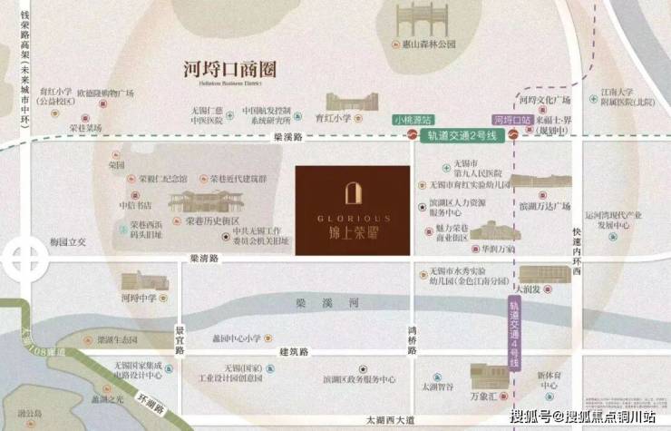 于城市稀贵处,匠造理想低密生活。锦上荣曜,择址于河埒口荣巷故里,占据河埒口核心地段,背山面河,惠山森林公园、渤公岛生态园、蠡湖之光等山水资源呈环抱之势,绿意萦绕,形成天然生态氧吧。更为难得的是,项目周边生活配套资源丰富,近享滨湖万达、万象汇等醇熟配套,以自身为繁华的原点,引领城市璀璨的人居未来。