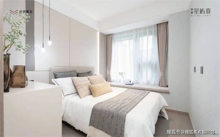 还带有无垛大飘窗,右侧设计成了一个小型梳妆台,细节真是爱了,完全满足小面积改善需求。