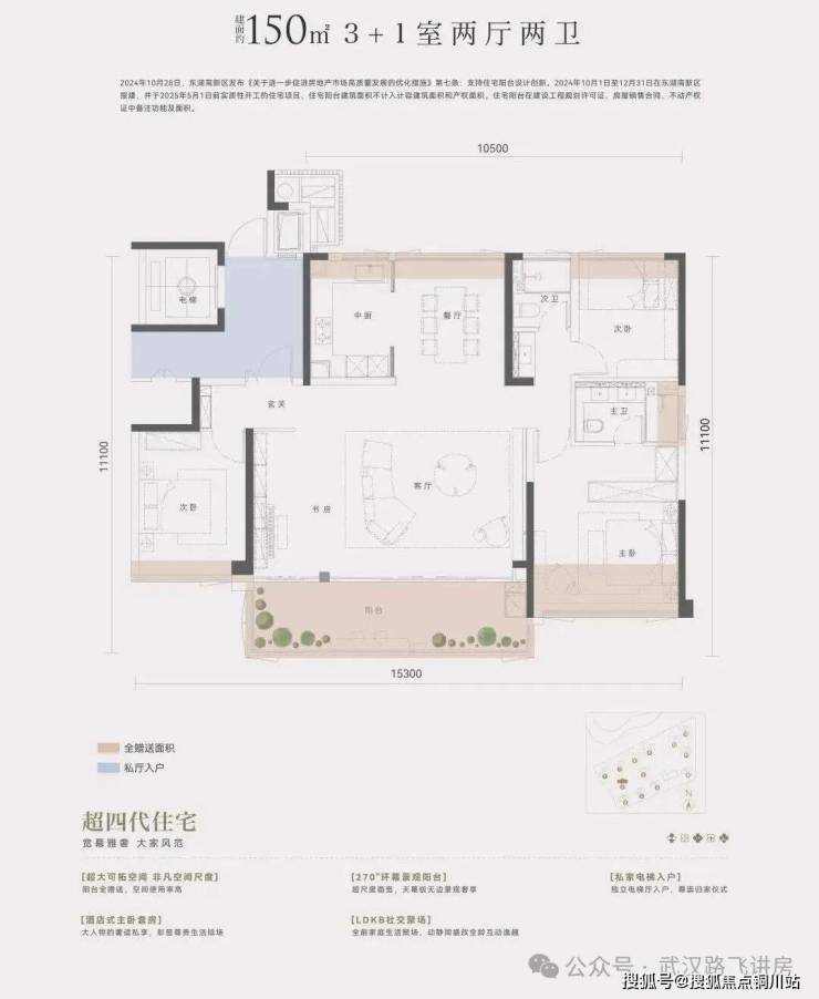 从户型看,该项目也是准四代产品,除了电梯前室、阳台、飘窗等优化面积外,还有较大花池可优化空间,得房率高。