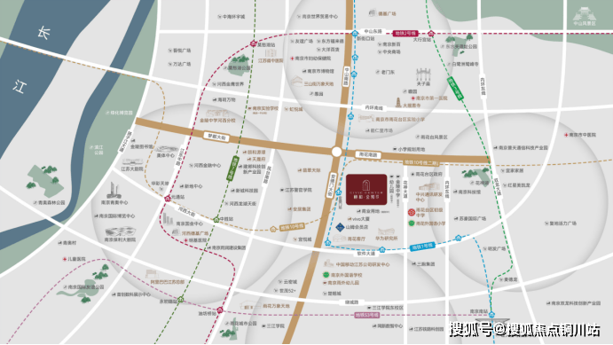 项目扼守中山南路与梦都大街双黄金轴线交汇处。这里不仅是地理中心,更是资源聚合的“黄金钟摆”:北接新街口百年商贸圈,西融国际化河西新城,东临南京南站交通枢纽,南依千亿级软件谷产业基地。