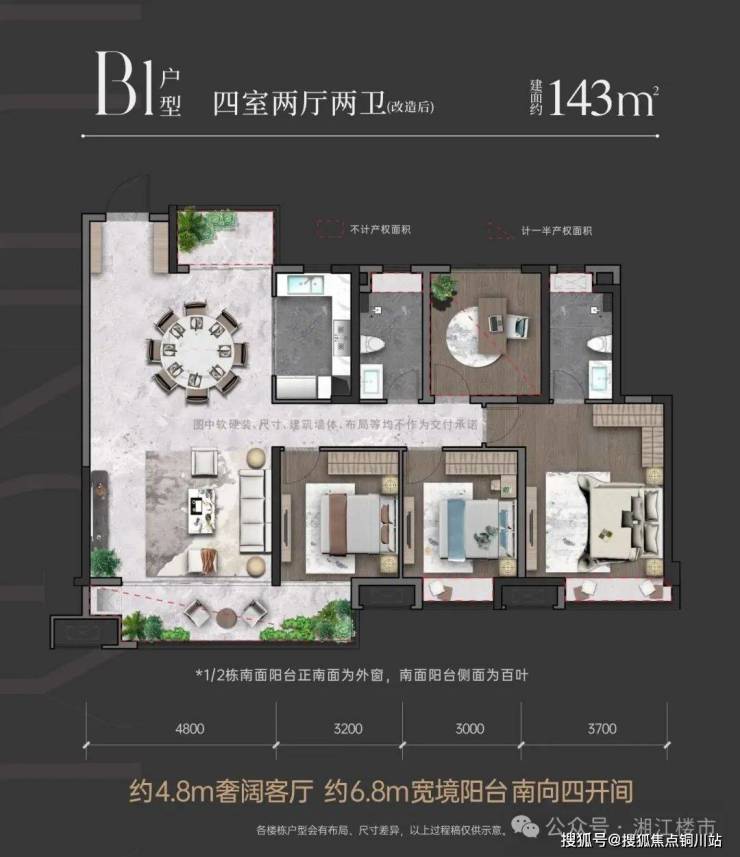 金茂·麓景悦在户型设计上同样令人惊艳。目前在售的约115㎡三房和143㎡四房,均为大面宽多开间朝南,拥有近IMAX阔景尺寸。以约115㎡改造三房为例,南向大面宽近11.2m,客、餐厅开间近4.5m,主卧开间近3.6m且为套间设计,装修时可打造步入式衣帽间+独立卫浴,宽敞又舒适。约143㎡改造四房更是出色,南向面宽近14.7m,客、餐厅开间近4.8m,主卧开间近3.7m,居住体验直接拉满。