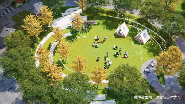 超1000m²多功能林下绿茵聚场,风光围坐的阳光会客厅。