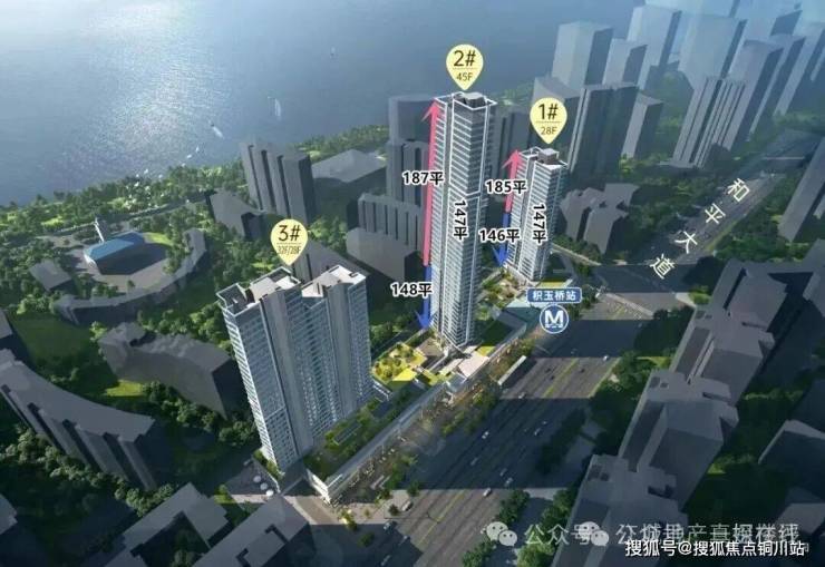 项目首开1、2号楼高层和超高层。其中1号楼28层,2号楼45层,都是两梯两户,分布户型均为建面约147-187平。