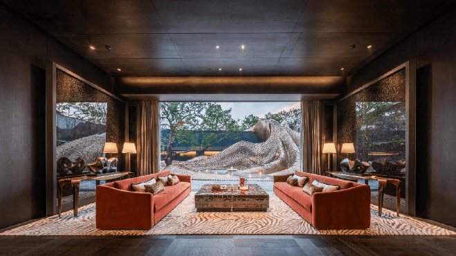 这种布局方式使居者能够更好地享受景观空间,配合空中院落创造人与自然共生的环境,让居者从城市喧嚣中暂时脱离出来,享受松弛的生活状态。