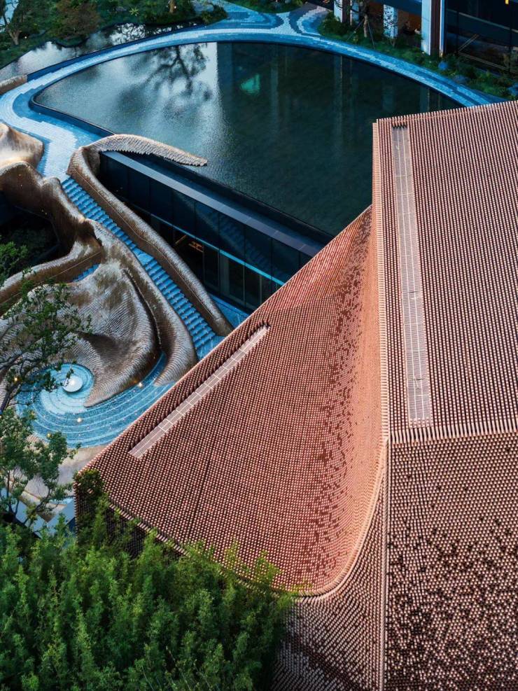 经过反复的实验,设计师张雷教授与雷晓华女士,采用现代参数化建筑手法,用模块化的方式,解决金砖排布的难题,这是现代建筑艺术与金陵文化美学的融合,促成技法与美学的胜利。