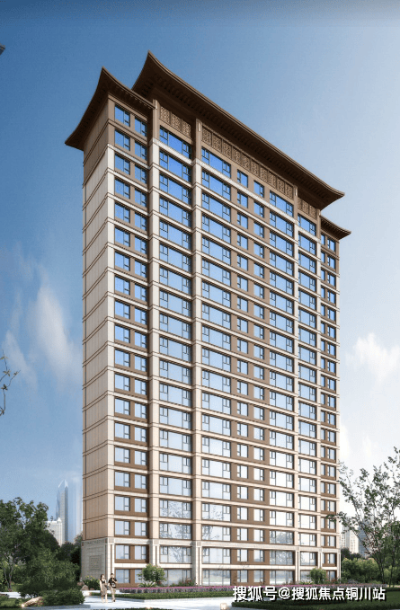 建筑风格:新中式风格,以王府中式元素与现代材料碰撞,屋顶重宇飞檐,立面装饰中式回纹元素。