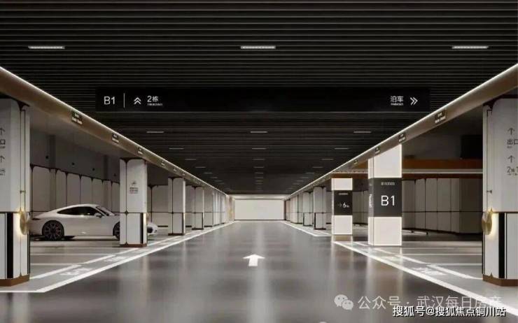 地下车库以星级酒店标准打造,铝格栅、星空吊顶与石材墙面,细节中彰显奢品质感。墙面嵌入夹丝玻璃壁灯与金属标识,地面采用环氧地坪漆,一站式全场景智慧无感停车体验,将归家升级为艺术与光感的尊崇仪式。