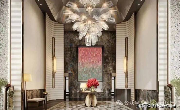 全精装酒店式大堂,以雕琢艺术品级的匠心,铺陈尊贵而有序的归家仪式。甄选蓝翡翠奢石景墙,地面水刀拼花工艺,勾勒奢华与雅致的归家心境。