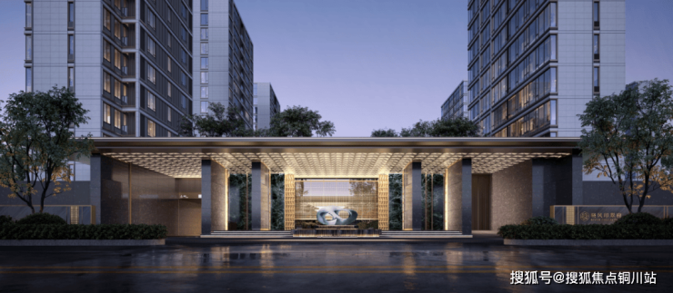 建筑设计:打造 “全维实景示范区”,采用 Super Flat 超扁平风格,沿袭绿城高端系经典审美,系统设计全包阳台,拥有巨幅窗墙比,结合印度蓝石材及香槟金铝线条,夜晚呈现低调蓝灰宝石质感。