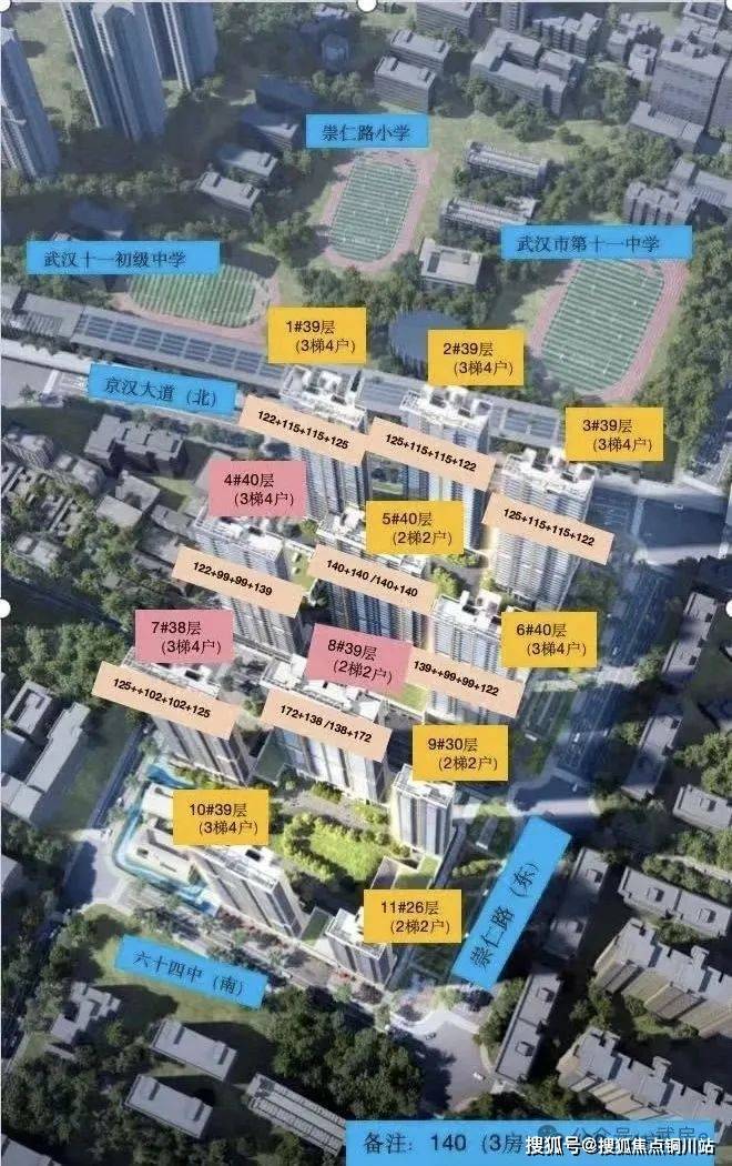 二期C地块,7-11号楼,总高,26-39层,8.9.11号楼2梯2户,7.10号楼3梯4户。