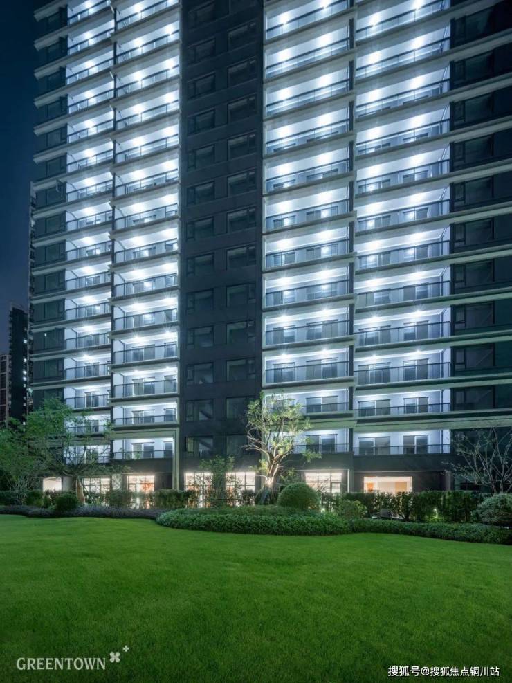 从国际艺术风尚采撷灵感,项目采用类公建化立面,约0.23的极致窗墙比,一体化的蓝灰色质感,整体轻盈且消隐。