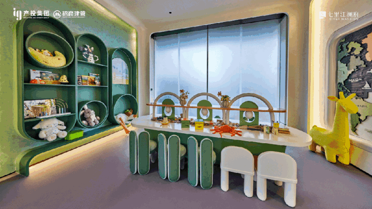 约2500㎡主题架空层,规划共享图书馆、童梦空间、运动浮岛、娱乐潮玩、萌宠中心五大主题空间。已亮相的童梦空间,有手工作坊、跳跳床等,何必出门带娃去游乐场?自家楼下就够孩子玩的!
