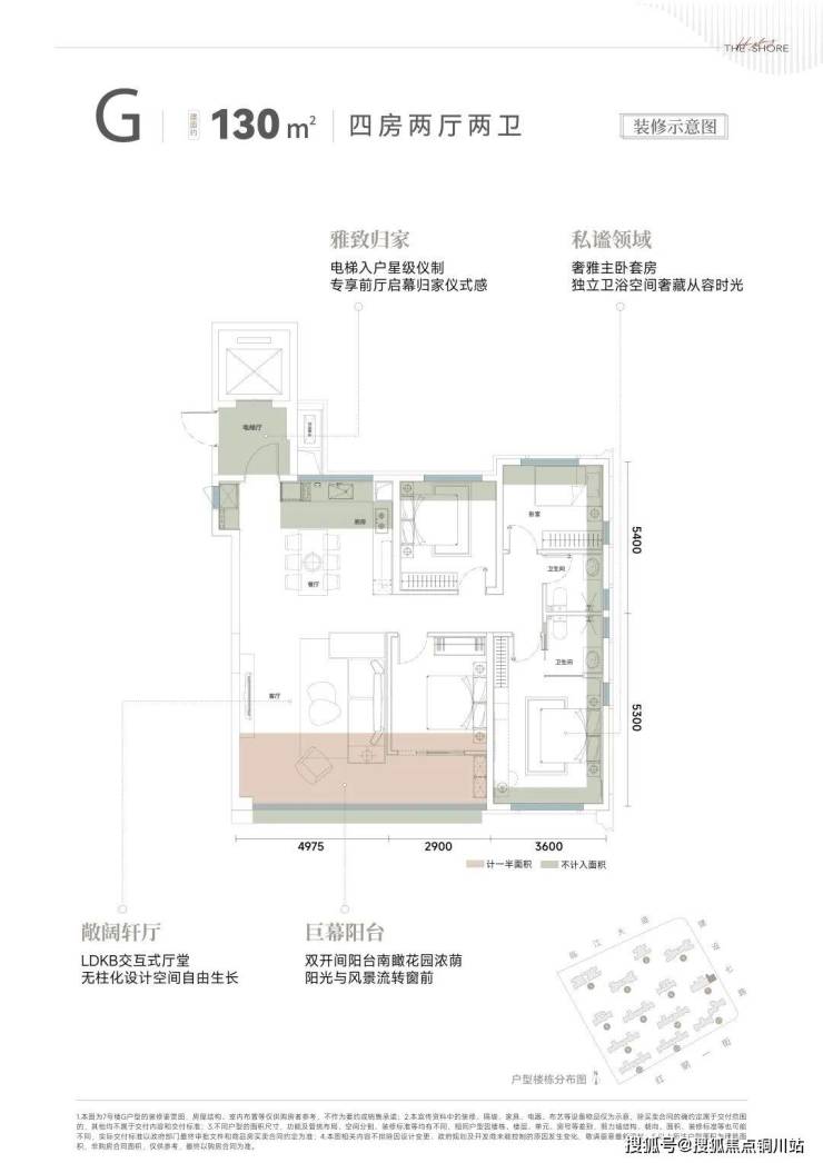 建面约130㎡的高改户型,得房率约98%,豪宅级别的独梯入户,专享私密电梯前厅。