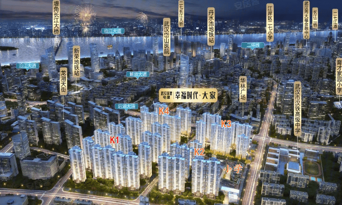 武汉幸福时代・大家位于武汉市江岸区后湖大道与百步亭路交汇处,处于二七滨江旁的核心板块 。该项目由武汉统建统百置业有限公司开发建设,武汉城市服务集团有限公司负责物业管理 。整个项目开发地块总建筑面积约 68 万方,分四期开发,是一个百万方体量的大型社区 。目前项目产权年限为 70 年,整体容积率为 3.36,绿化率达 30% 。规划用户数量为 1795 户,车位数有 2307 个,车位比 1:1.28 。楼盘建筑类型为高层,当前主推 K1 地块,22 号楼 33 层,23 号楼 26 层,25 号楼 17 层,26 号楼 32 层,27 号楼 19 层 。项目于 2020 年 1 月首开盘,K1 地块预计 2026 年 8 月交付,交房标准为毛坯 。