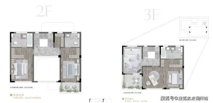 建面约215㎡联排,布局与上一户型相同,户型布局方正,后期方便业主改造,户型无面积浪费,实用性更强,功能布局更加合理,2F、3F均有露台赠送,真正做到有天有地有自然。