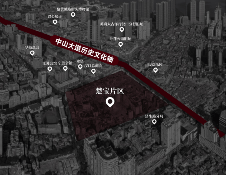 武汉城建·楚宝里位于汉口正内环,揽中山大道,占据著名的汉口历史文化街区,同时又毗邻江汉路商圈,地段稀缺性堪比上海新天地。
