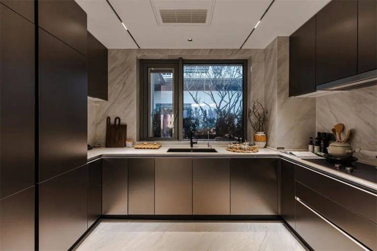 整体厨柜线条流畅,简约高贵,独特的金属光泽,蕴藏着不露锋芒的高级感,让空间散发出独特的气质。