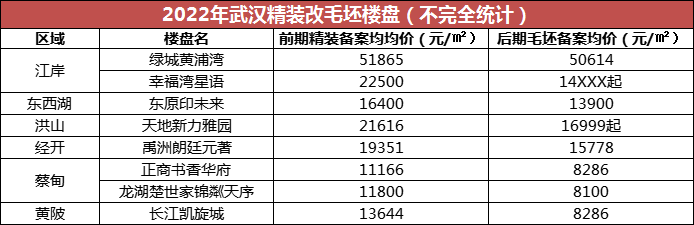 东西湖东原印未来在2020年9月底首次取得预售证时卖毛坯房,备案价13900元/㎡、折后约12500元/㎡+,2021年5月二期7、8号楼取证时毛坯改精装备案价上涨2500元/㎡,在2021年底该楼盘又从精装变为毛坯,备案价回调至13900元/㎡,2022年1月拿证的1、2、6号楼依旧是毛坯销售,备案价13900元/㎡,目前售楼部报价折后约10200元/㎡,实际可能还有折扣。