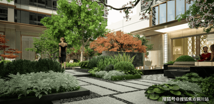 在纷繁冗乱的都市中构建一处自在平和的专属自然花园,草木之息是诗意的迎宾场所,方寸之间是延伸的院落社交,经纬园路交织,融合汇聚成一个个精致的小空间。空间多以开花乔木片植成林,彩叶春秋绿变黄,夏花冬果两生香。步入这浓荫之中,感受林下的静谧力量,享受度假氛围的黄金时光。