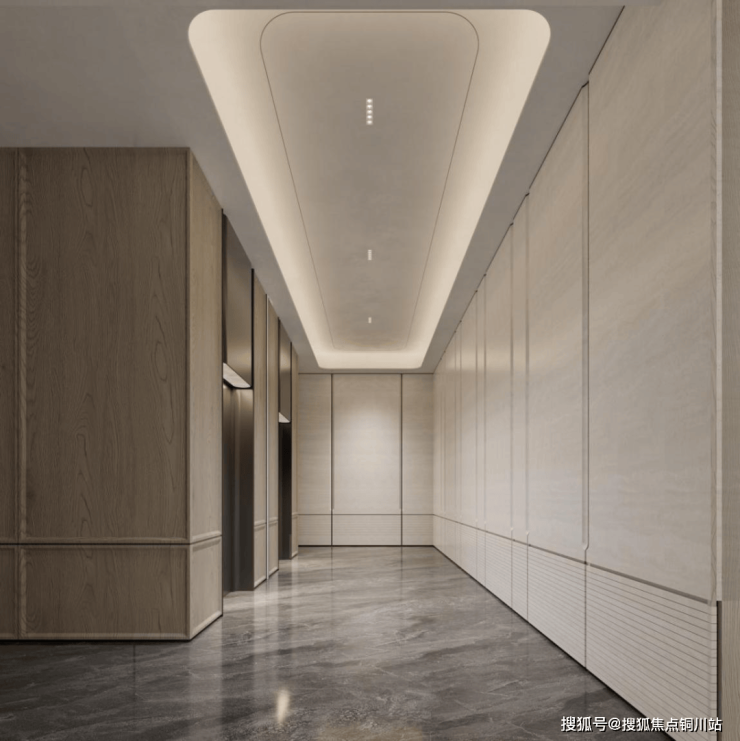 私享电梯厅:步入明亮雅致的私享电梯厅,宁静与私密如期而至。墙面颜色柔和,有细微的材质肌理,既干净又不单薄。温暖的木色穿插在空间中,与米色砖自然过渡,轻松地把空间气温拉高。地面为深色仿石材砖,和浅色仿石材砖形成明确但不过分的层次。