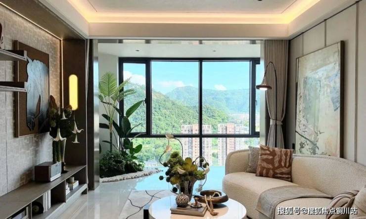 南向全景落地窗的设计,进一步打破了室内外的界限,不仅带来了全天候的充足光照,更将无边风景框成一幅动态画卷,让空间视野无限延伸。在这里,光与景成为家的主角,每一个日常时刻都沐浴在温暖与诗意之中。
