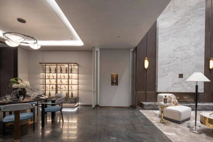 ①突破传统尺度的3.3米层高,视野超出想象。约6.6米的客厅挑高,将别墅的垂直尺度与大平层的横向尺度融合,创造“平层墅居”生活感受。