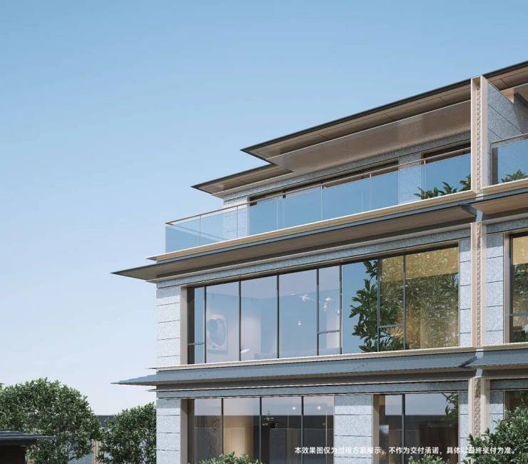 有别于传统别墅真石漆外立面设计,金茂璞印梅溪别墅立面紧跟潮流,极具现代风。
