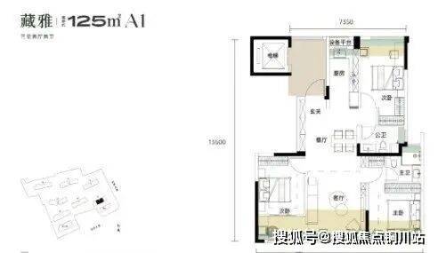建面约115平的边套三房:分布在1号楼端头边户,3个卧室朝南,餐客厅一体全景舱设计,带独立电梯前室。