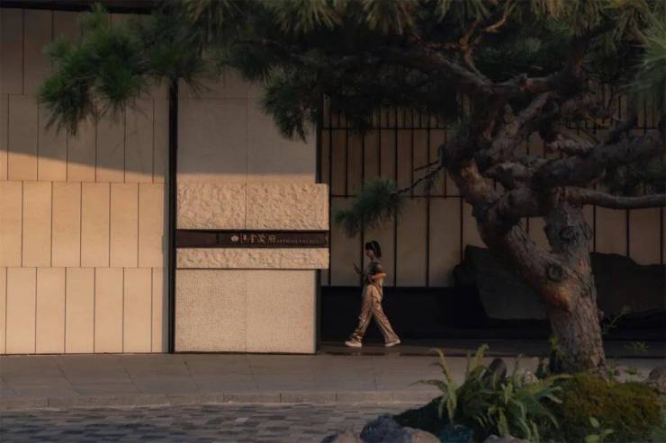 项目门庭打造超大尺度的酒店环岛式落客区,模拟自然风貌的造型石、灵动水景、树形舒展的造型油松融为一体,形成“东方盆景” 的入口主景,烘托出尊贵的归家仪式感。