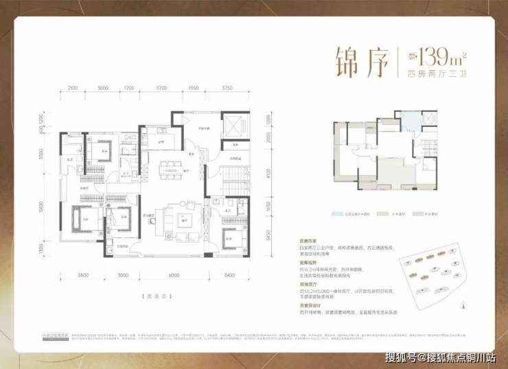 对于有大面积改善需求的购房者可关注建面约171㎡的奢适四房户型,四室两厅三卫空间格局,约19.5m面宽,套房次卧,动静分区,客餐厅以及瞰景阳台等累计约有61.2㎡的生活空间,另有步入式衣帽间+独立卫浴,彰显大宅气质。