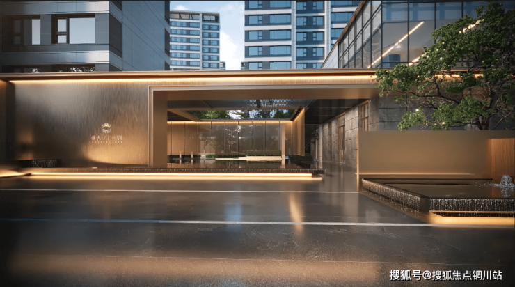 以社区入口为例,参照星级酒店标准,打造高约6米、宽约30米的奢阔门头,辨识度、仪式感、品质感兼具。