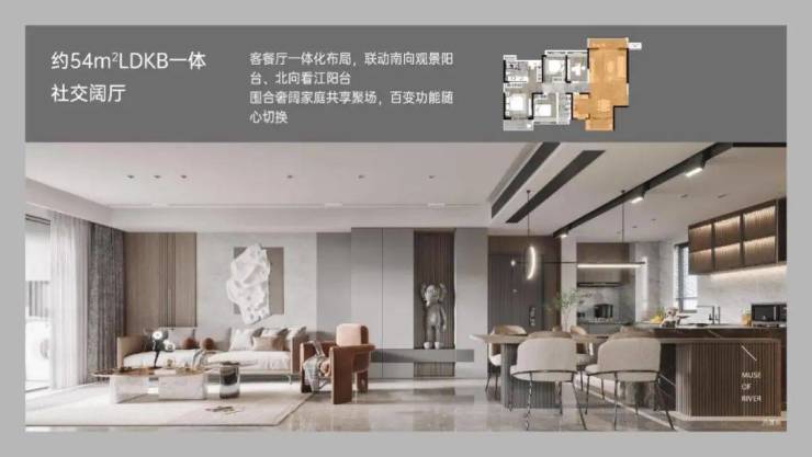 约54㎡LDKB一体社交阔厅,演绎N种生活情境。