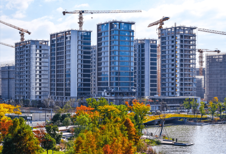 ▲明湖逸庐-外立面需要多位技艺精湛的外墙工人协同施工
