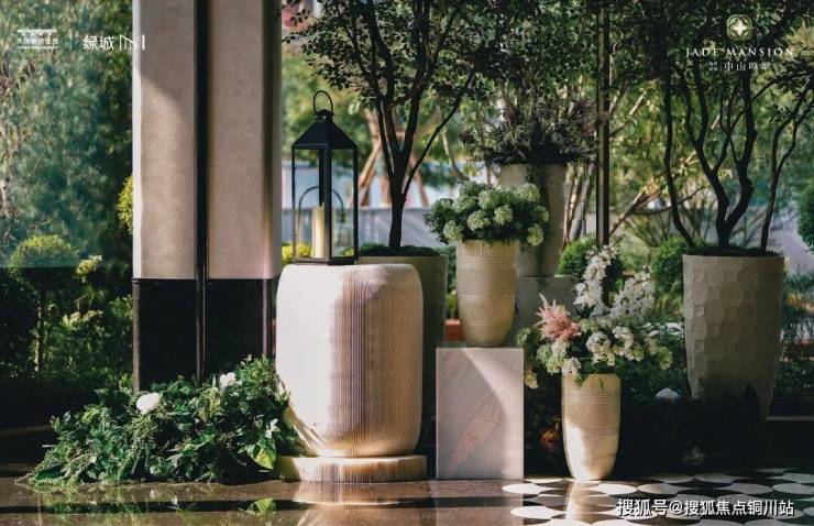 同时 , 中山鸣翠艺术街区 还赋予 了业主精致海派生活方式,垂直立体园林及共享空间,带来惬意日常。项目北侧的主入口用尺度将气场拉满,约37m的沿街展面,搭配约10.5m的挑高,彰显出豪宅气势,既提升了归家仪式感,又丰富了城市界 面 景观。隐翠水央门庭,创造城市与社区之间的过渡,更让业主完成嘈杂与静谧的转换,进入到品质生活模式。