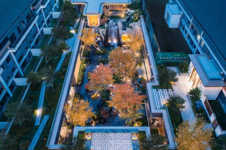 设计上利用贯穿围合的下沉庭院,多级立体的生态花园,使单一的空间被赋予丰富的层次,呈现生态花园般的视觉效果,结合社区入口,打造1.6万㎡ 全维实景示范区。