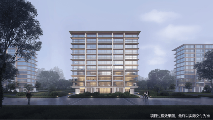 建筑外立面采用银灰色 + 香槟色铝板搭配米白色石材,质感卓然,搭配 LOW-E 中空玻璃(南向三玻两腔),既彰显宋式建筑的简约大气,又兼具现代奢宅的静谧质感。