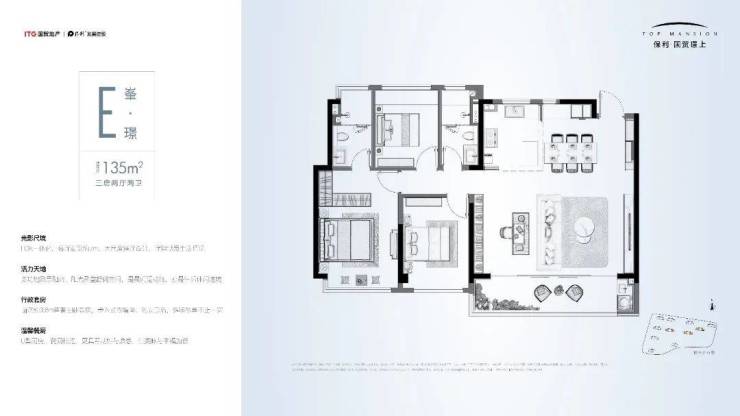 △建面约135㎡的三房两卫户型,区域终改客户的首选,约7米的客厅面宽,盛放家庭美好,约3.6米的主卧套房,精致生活一步到位。