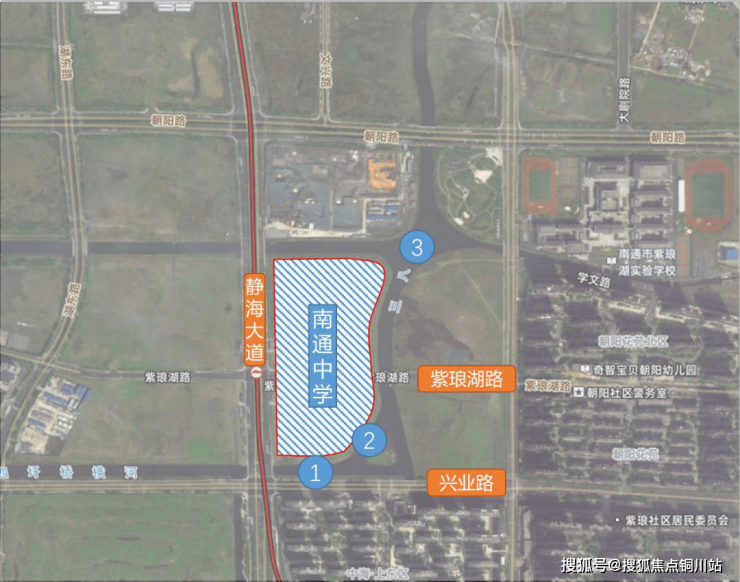 ▼本次面向社会公众征集创意设计方案的人行景观桥,位于下图3号点位。