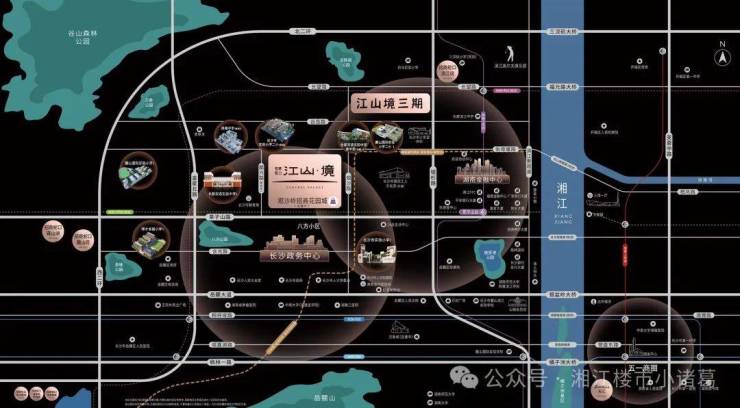 【臻稀生态】隔路即岳鞍阁公园,西接“长沙第二大生态绿肺”谷山森林公园,约2公里内汇集汉长沙遗址公园、潇湘风光带