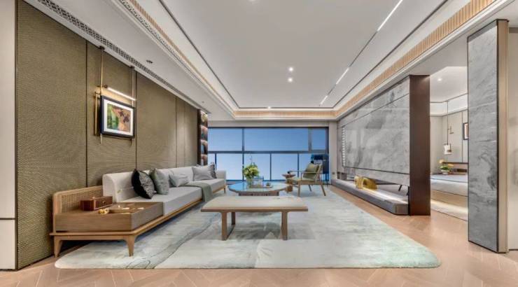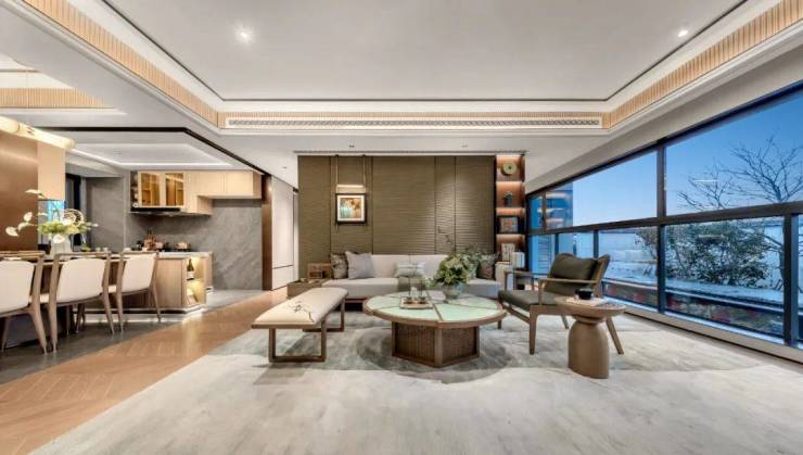 整个LDKB公区采用一体化设计,会客/观影/派对轻松转场,开间约5.2米朗阔宽厅,轻松摆下6-7人位沙发组合,任亲融于堂间自然流转