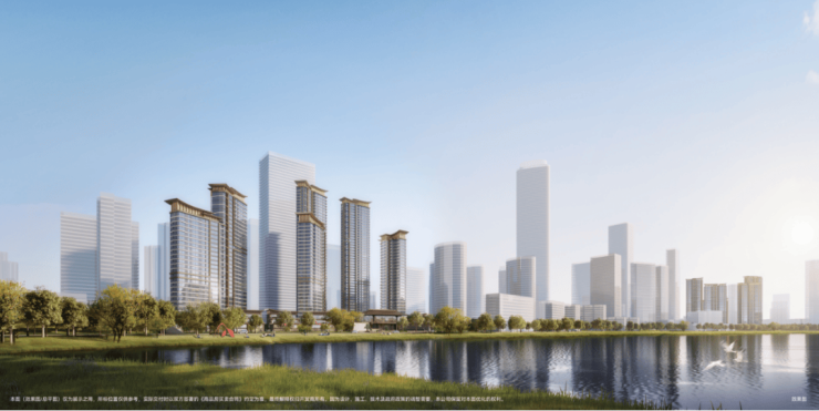 从效果图来看,项目整体采用了围合式建筑布局,5栋住宅基本沿沙湖一字排开。如此一来,每一栋楼、每一户豪宅都能实现极优看湖视野。